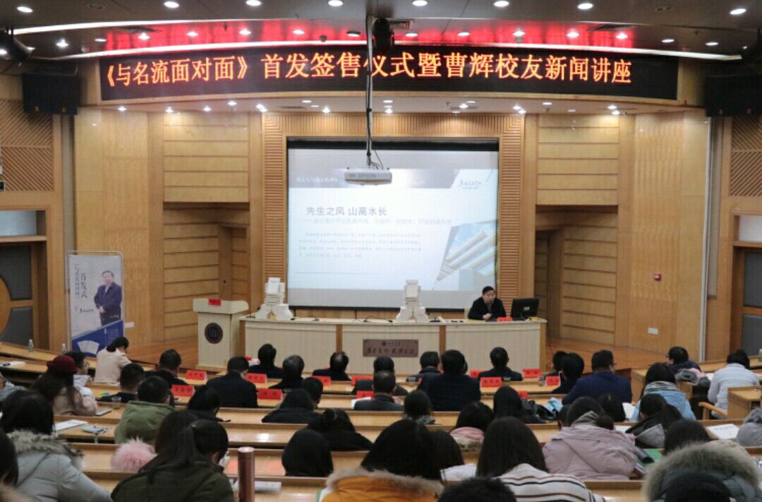 12月8日,虽然湘潭飘着细雨、寒风瑟瑟,湘潭大学图书馆报告厅里却是人声鼎沸、掌声雷动,《与名流面对面——曹辉新闻作品精选》新书首发式、新闻讲座暨签售活动正在此举行。副校长刘建平,湖南日报社编委、市州新闻中心主任黄志坚以及党委宣传部、亚洲精品国产精品、公共管理学院、商学院、校地共建中心、社科处、科技处、校友总会、研究生院等单位负责人出席首发式。