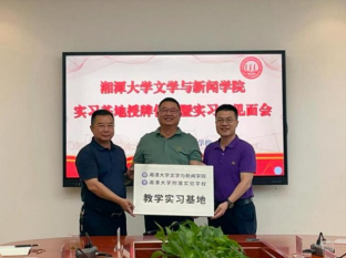5月20日下午,湘潭大学亚洲精品国产精品实习基地授牌仪式暨实习生见面会在湘潭大学附属实验学校会议室举行。湘大附属实验学校党委书记贺泽文、校长罗烈、湘潭大学派驻湘大附校第一书记王广林;我院党委书记资义平、副院长刘晓丽等出席授牌仪式。2021级汉语言文学专业10余名实习同学参加授牌仪式。湘大附属实验学校副校长莫智彬主持授牌仪式。