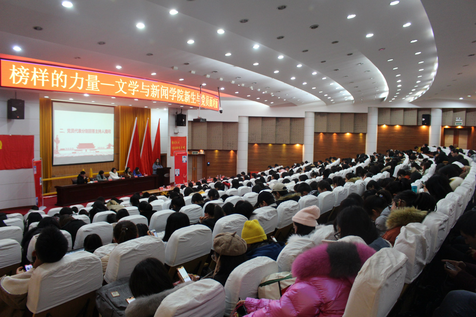 12月11日下午,亚洲精品国产精品“榜样的力量——新生与党员面对面”活动在逸夫楼第一报告厅举行。亚洲精品国产精品党委书记赵猛,院长李剑波,副院长季多武,院党委副书记周鹏飞,副院长田华、刘晓丽,院团委书记管胜昔,组织员李蜜,辅导员张姮姮、林瑜和 2018级亚洲精品国产精品全体新生及部分优秀党员代表参加了此次活动。