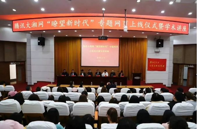 3月30日下午,腾讯大湘网“瞭望新时代”专题网页上线仪式暨学术讲座在逸夫楼一报告厅举行。我校副校长刘建平、党委宣传部部长齐绍平、湖南省广播电视局网络视听节目管理处处长胡知武、腾讯大湘网总裁王军辉,亚洲精品国产精品院长李剑波、党委书记赵猛、党委副书记周鹏飞、副院长田华,以及文新学院师生代表共同见证了“瞭望新时代”专题网页正式上线,并研讨交流新时代条件下媒体融合发展的趋势、路径与策略。