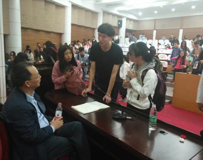 精彩的讲座结束后,曾艳兵教授与湘潭大学师生就中国文化如何影响卡夫卡、对卡夫卡的解读是否有过度阐释和拔高等问题进行了热烈的交流。