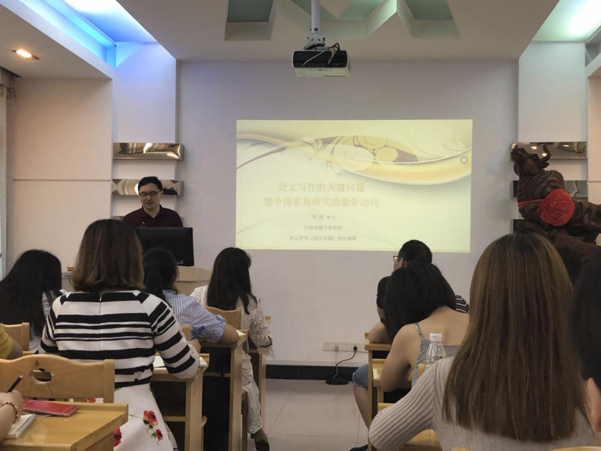 5月25日上午,《现代传播》责任编辑、中国传媒大学副教授刘俊来院应邀来我院讲学,刘俊教授以“论文写作的关键问题暨中国影视研究的最新动向”为题,给大家带来了一场精彩的前沿学术讲座。讲座由亚洲精品国产精品副教授华进主持,学院新闻传播学的教师和研究生一同聆听了讲座。