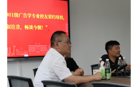 座谈会上,2001级广告专业校友作为专业发展的“拓荒者”,分别分享了各自二十年来的职业历程与母校情结。深耕广告行业的张伟表示,湘大广告系课程体系的全面性与前瞻性,为他奠定了扎实的专业基础。“从市场调研到创意策划,母校的教育让我在职场竞争中始终占据优势。”他感慨道。如今,张伟已成为某知名4A广告公司高管,并多次回校开展职业规划讲座。易建国会长回顾了从湘大学子到企业创始人的蜕变。作为首届广告系毕业生,他始终秉承“湘大广告人”的专业精神。“感恩母校的培养,携手打造‘湘大广告’品牌影响力。”2011级广电一班院友聚焦职场新篇与青春记忆。胡亮从湖南卫视编导转型为自媒体创业者,坦言“母校教会我敢想敢拼,人生是旷野而非轨道”;郭倩带来家乡特产与同窗分享,笑称“抛下工作赴约,只因这份情谊无可替代”。