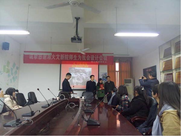 12月5日下午,“韶山精神研究会”会徽设计大赛颁奖仪式在学校学生活动中心326会议室举行,我院学生包揽全部奖项。韶山精神研究会会长罗正林为获奖者颁奖。