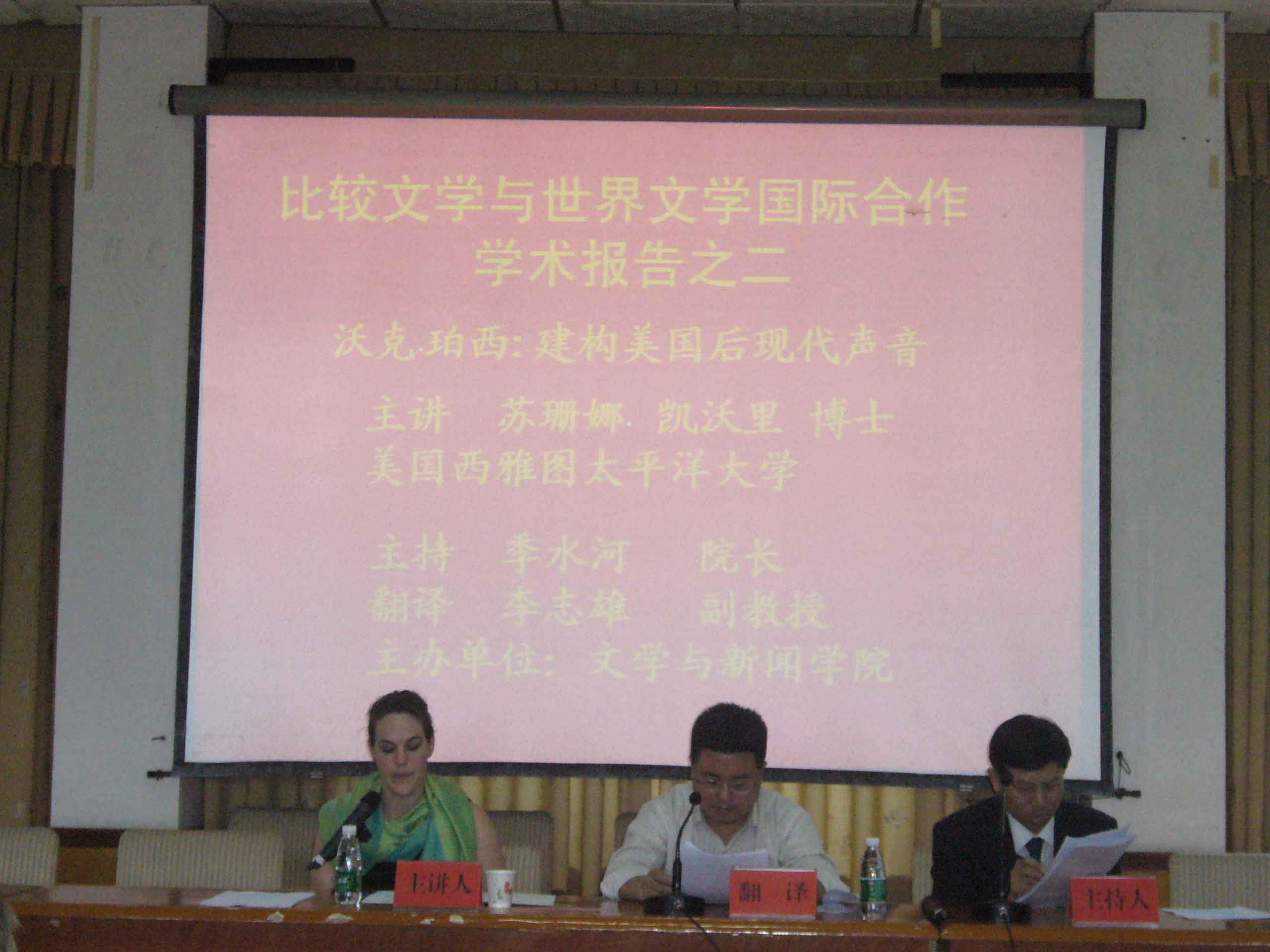 2010年5月6日,美国西雅图太平洋大学代表团来我校进行学术访问,在我校亚洲精品国产精品和高等教育研究所进行了学术讲座和合作商谈,成为了比较文学与世界文学国际合作学术研讨的重要内容。