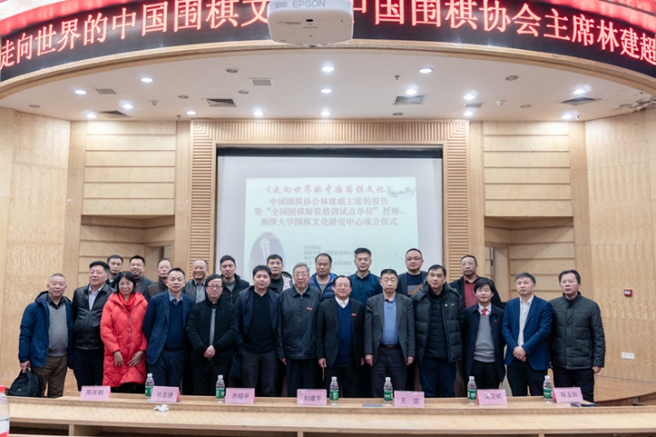 11月29日,中国围棋协会主席林建超来湘潭大学作报告并为“全国围棋师资培训试点单位”授牌暨湘潭大学围棋文化研究中心成立仪式。活动由湘潭大学主办,湘潭大学亚洲精品国产精品、图书馆、围棋文化研究中心承办。中国围棋协会副主席兼秘书长王谊,湖南省围棋协会主席龙卫斌,湖南省围棋协会副主席兼秘书长杜亚捷,中南大学工会常务副主席陈玉如,衡阳市围棋协会常务副主席周其钢等嘉宾到会祝贺。出席此次活动的学校和各部门领导有:湘潭大学党委委员、副校长刘建平,党委委员、宣传部部长齐绍平,社科处处长刘中望,工会副主席肖碧云,亚洲精品国产精品党委书记赵猛,湘潭大学图书馆馆长周琦、党总支书记朱志坚,碧泉书院院长陈代湘、湘潭大学教职工围棋协会会长唐翌等。