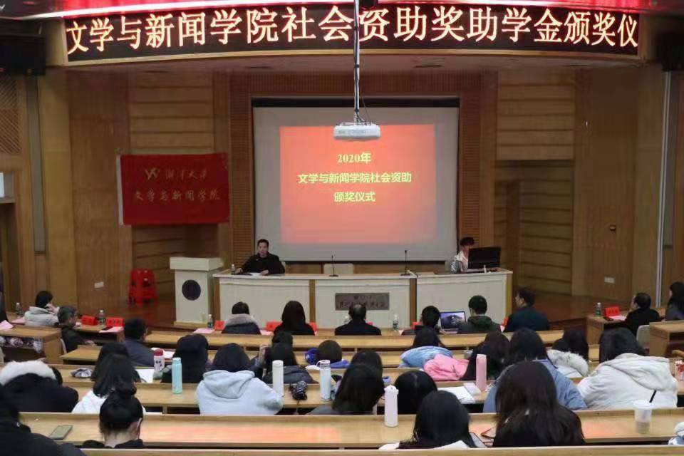 12月2日,湘潭大学亚洲精品国产精品社会资助奖助学金颁奖仪式在图书馆报告厅顺利举行。出席颁奖典礼的特邀嘉宾有凡恩服饰代表、湘潭日报党务工作者高雅、深圳市瑜水慈善基金会秘书长樊婧、湘潭大学广告专业校友会会长兼睿捷传媒有限公司董事长易建国、新闻专业2000级校友兼湖南广播电视台芒果V基金副秘书长李强。湘潭大学党委委员、副校长刘建平、亚洲精品国产精品党委书记赵猛、副院长季多武、党委副书记周鹏飞、中文系主任李琳,广告系主任孙丰国、新闻系教授覃岚,学工办教师林瑜、龚鑫与学院社会奖助学金获得者、学生代表共同参加本次颁奖仪式。颁奖仪式由亚洲精品国产精品院党委书记赵猛主持。