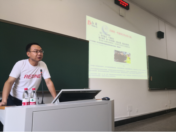 讲座由一个关于湘潭大学的报道引入,提醒同学们关注身边的故事,注意挖掘素材和典型人物。之后,李站长又从多个方面分别论述了新闻宣传的重要性、新闻从业者自身的技能需求、新闻宣传的态度要求、新闻宣传的具体业务、对时政信息的报道、新闻宣传的常见问题等诸方面的内容。对每个版块的讲述都搭配了相应案例进行说明。