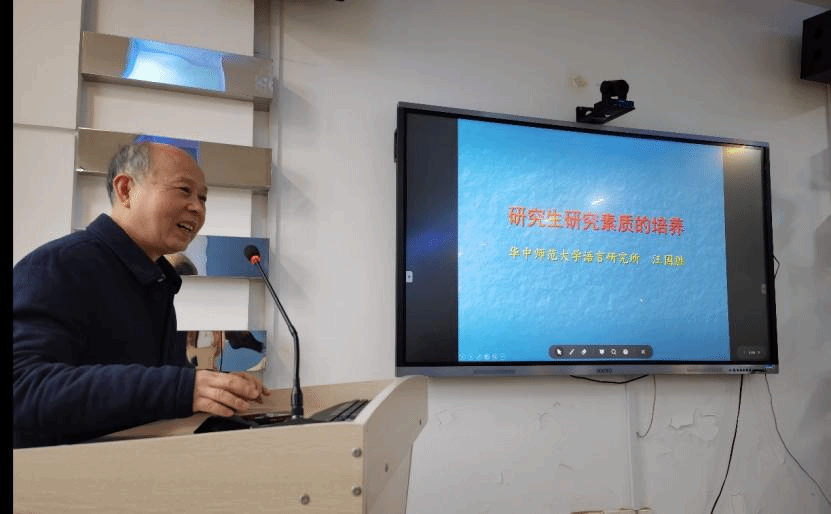 1月14日下午,华中师范大学教授、博士生导师汪国胜先生莅临亚洲精品国产精品,为师生带来了题为“研究生研究素质的培养”的讲座。讲座由陈山青教授主持,我院语言学及应用语言学、汉语言文字学专业师生及语言学爱好者现场聆听了讲座。