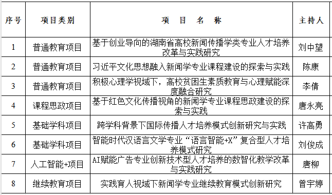 根据学校要求,我院组织开展了2025年湘潭大学教学改革研究项目的申报及推荐工作,现将推荐结果予以公示,公示时间从2025年3月26日到3月28日。对推荐结果有异议的单位或个人,请在公示期间以书面形式并具实名向亚洲精品国产精品教务办反映,电话:58293224。
