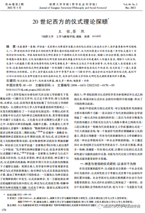 我院蔡熙教授和博士生王银合著的论文《20世纪西方的仪式理论探赜》刊发于CSSCI期刊《湘潭大学学报》2022年第2期。该文为湖南省研究生科研创新项目“《梯玛神歌》的仪式叙事和精神治疗功能研究”( CX20210591) 的阶段性成果。