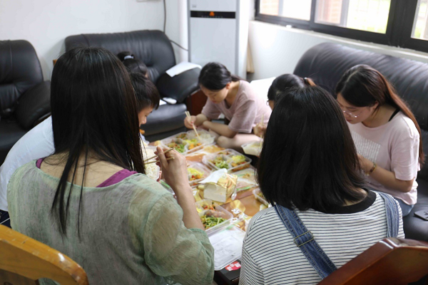 工作虽然繁忙,但生活品质不能掉队,就算是盒饭也要吃出西餐的感觉,这是我们的口号。其实我们的生活水平挺高的,陈老师总是给我们加鸡腿、加零食。除了吃,我们还有不少娱乐活动,例如自嗨式演唱会、蹦迪比赛或者是傍晚时分的一场电影。生活本就是如此美好,累了就应该跟朋友亲人一起疯癫,一起宣泄。