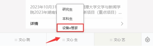 方法一:关注湘潭大学亚洲精品国产精品微信公众号,在<文心 生>栏目下,点击<设备e管家>即可进入